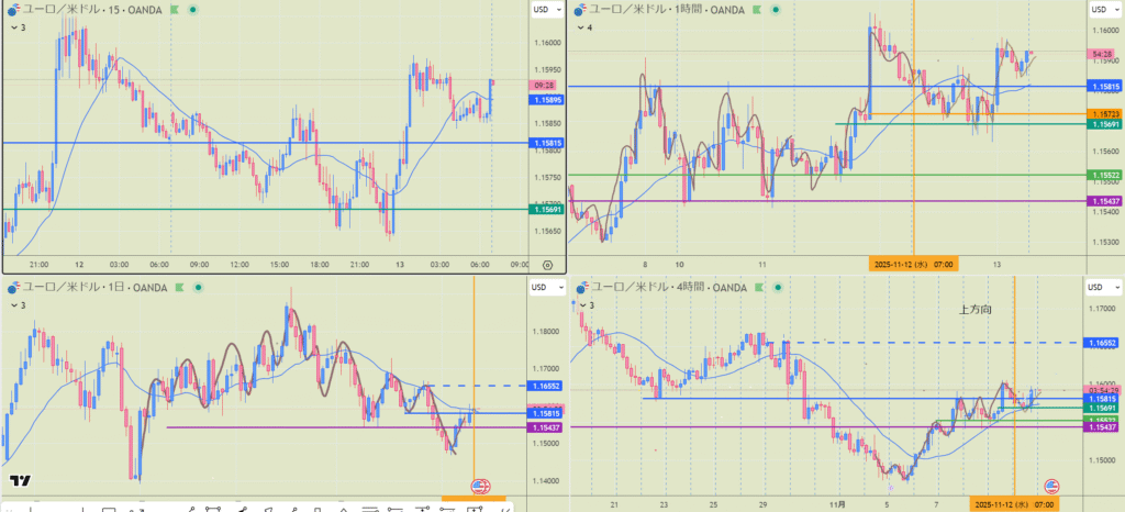日足が上にいる状態だが、4Hで押目をつけるのか?観察。