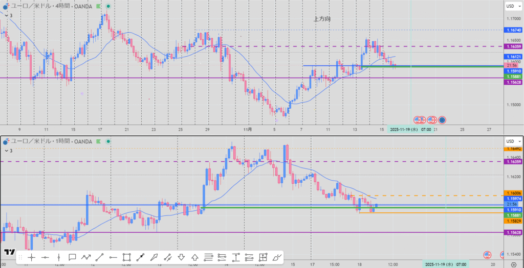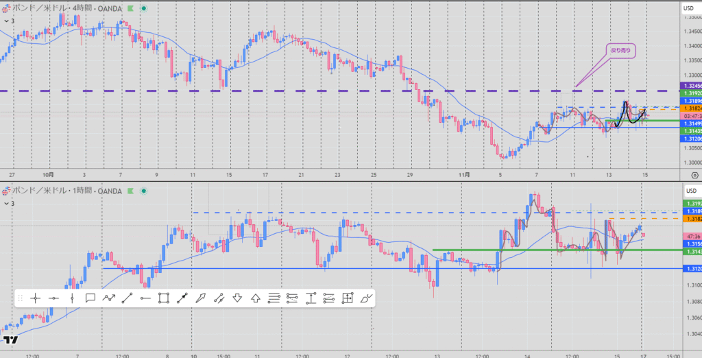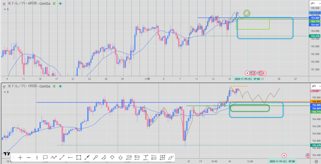 シナリオ :①4Hで押し目をつけるようなら買い検討