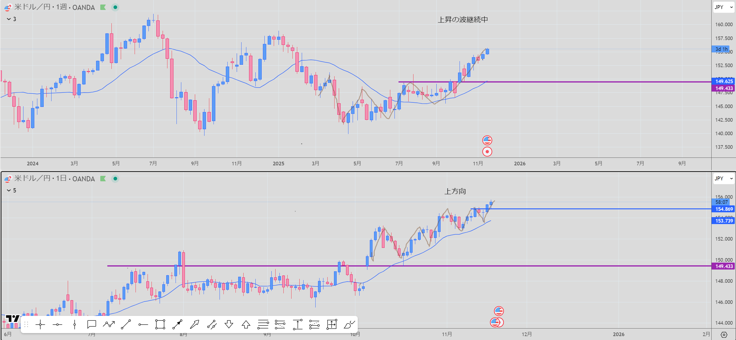 - 週足 紫 買いサポート 実線