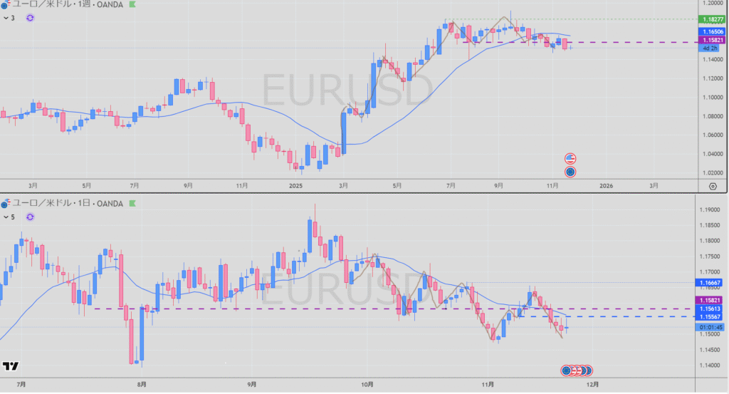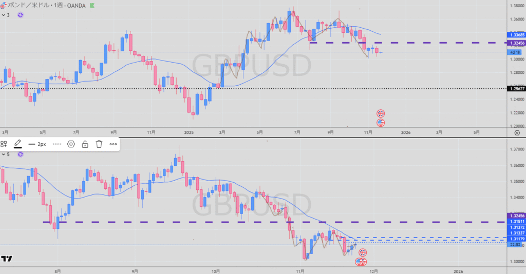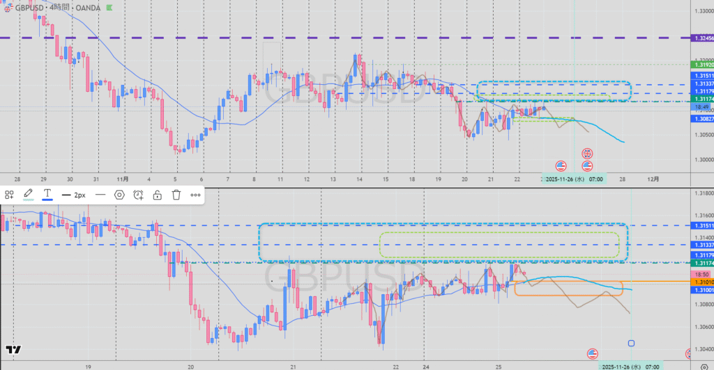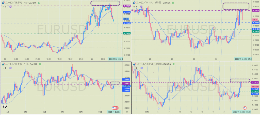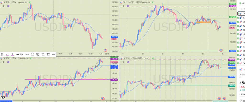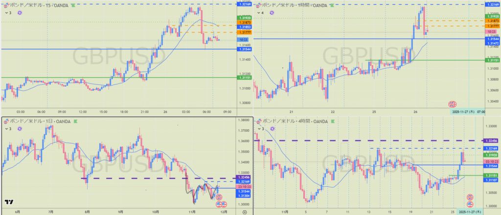 日足の高値に1H15分が反応か?ポンドルは日足軸で動いてる?