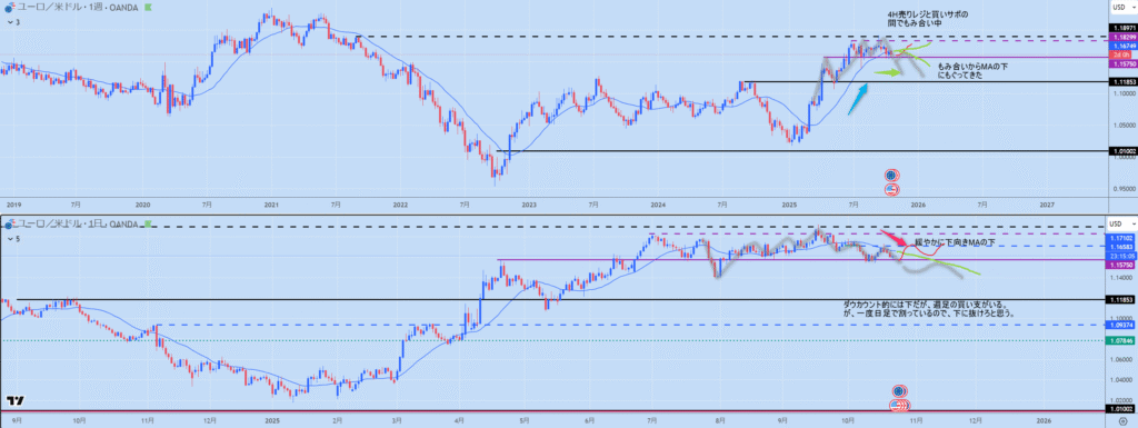 下位足ではもみ合ってるのだろう。 ローソク足MAより上に位置