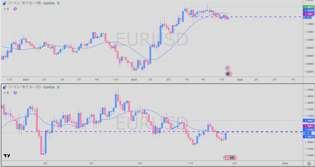 1時間を見ると安値がなかなか破られていない。下に抜けたなら4H安値まで 売りを考える。